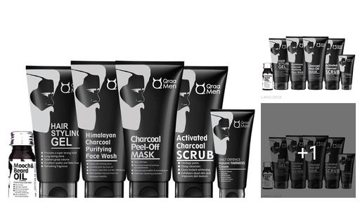 Qraa Men Charcoal Kit-Scrub,Face wash,Peel-off Mask,Hair Styling Gel