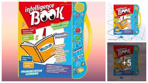 “Intelligence Book – Interactive Parent-Child Learning Book with Phonetic Pronunciation, English Alphabet, Numbers, Nursery Rhymes, Animals, Fruits, Vehicles, and Music for Early Childhood Education.”h