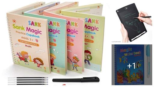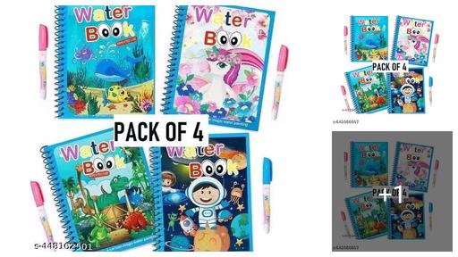 Reusable Magic Water Book Quick-Dry Coloring Book with Magic Pen – Doodle and Painting Board for Children's Educational Drawing Pad (Assorted Colors & Random Designs, Pack of 4)