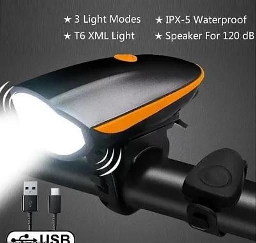 Name: 2-in-1 USB Rechargeable Bicycle/Bike Horn LED Front Light (3 modes) (Black, Orange)
