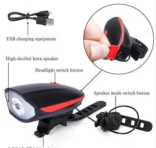 2-in-1 USB Rechargeable Bicycle/Bike Horn LED Front Light (3 modes) (Black, Orange)