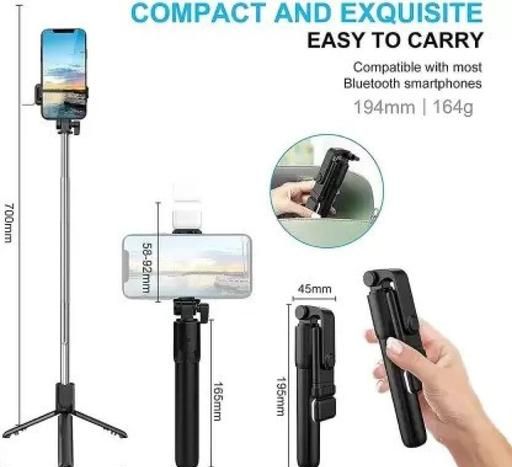 CRATIX r1s Bluetooth Selfie StickModel Number :selfe stick with led light with tripod standd|tripod mobile holder\bluetooth selfie stick |bluetooth tripod stand|tripod stand with bluetooth remote|selfie stick with bluetooth remote with free gift Model Name :R1S Sales Package :1 SELFIE STICK Designed For :Mobile Phones CRATIX r1s Bluetooth Selfie Stick , Mobile stand, Moblie stand stick selife with light, Moblie stick for home, Moblie selife stick with tripod stand , Eyuvaa tripod Moblie stand and selife stick with bluetooth , Selfie stick with moblie stand best quality , selife stick with tripod stand bluetooth for mobile Load Capacity :500 g Supported Interface :Bluetooth Material :PLASTIC