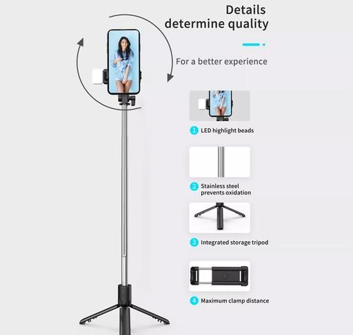 Name: R1S Extendable Flash Selfie Stick Tripod with Bluetooth Remote Bluetooth Selfie Stick Tripod