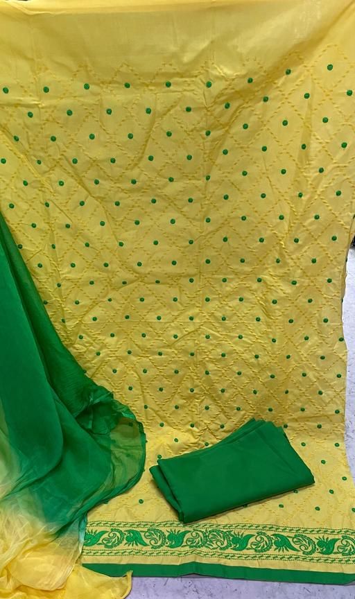 Name: Women's Yellow Checked Embroidered Cotton Suits & Dress Materials