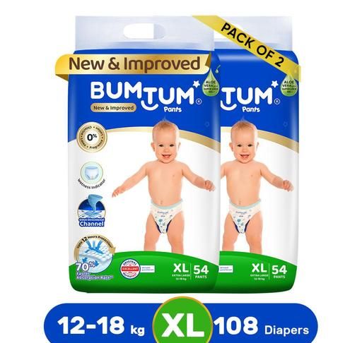 Product Name: Bumtum Baby Diaper Pants with Double Layer Leakage Protection - 12 to 18 Kg (108 Count, X-Large, Pack of 2)