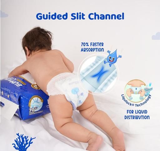 1. COTTONY SOFT FABRIC: Diaper pants, fabricated with cottony soft material are soft & gentle on baby’s skin for regular usage. The top layer designed with a diamond pattern creates larger absorbing area & uniformly spreads the liquid for easy & fast absorption.