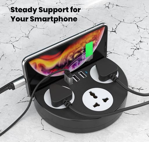 Name: Power Plate 5 Surge Protector 1500W High Power Converter with USB Charger & Mobile Holder 3AC Socket + 3USB Ports I 1.5 m Cord Length ( Black)