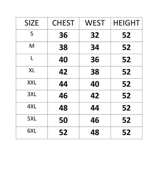 6XL (Bust Size: 52 in, Size Length: 52 in)