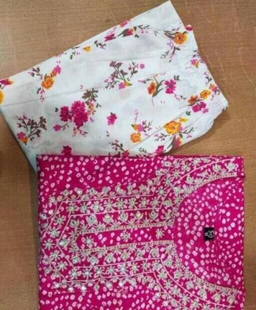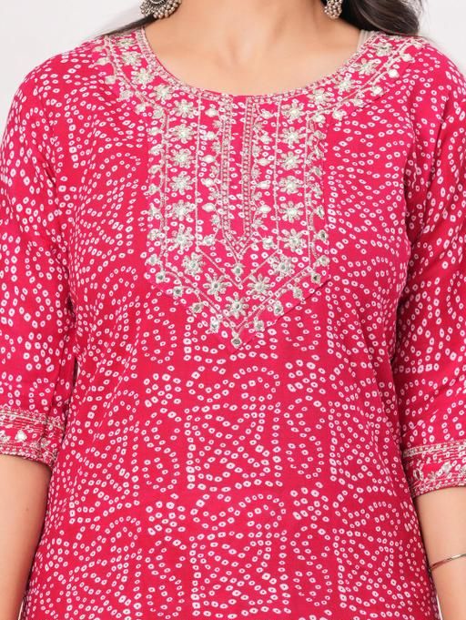 Name: Bandhani Print Kurta Set with 3-4 th sleeve