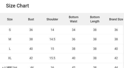 M (Bust Size: 38 in, Shoulder Size: 14 in, Kurta Waist Size: 34 in, Kurta Length Size: 44 in, Bottom Waist Size: 36 in, Bottom Hip Size: 40 in, Bottom Length Size: 38 in)