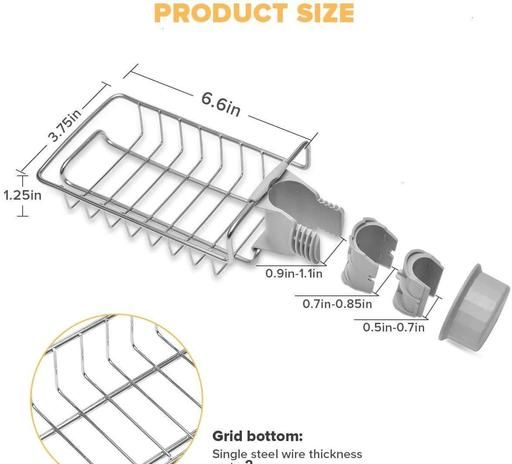 Name: Spinfluencs Stainless Steel Adjusting Multifunctional Over Kitchen Sink Caddy Clamp Faucet Sponge Scrubber Holder Storage Hanging Shelf Draining Bathroom Tap Shampoo Soap Organizer Rack