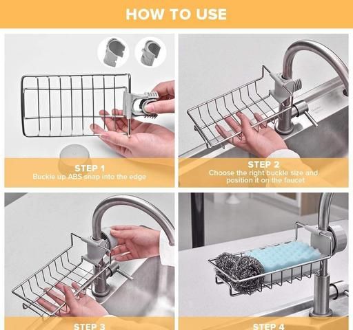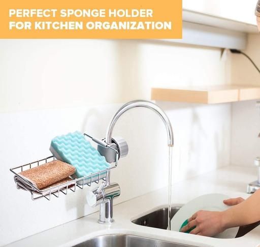 Strong Bearing Capcity: Our Sink Faucet Sponge Holder more reassuring to place articles, the bathroom can also be placed in various application modes.
