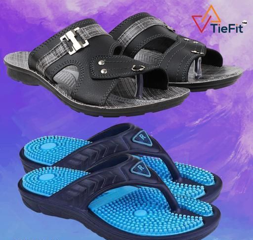 Name: TieFit Men's Accupressure Non-Slip Slippers & TieFit Men's Thong Slipper Combo Pair Of 2