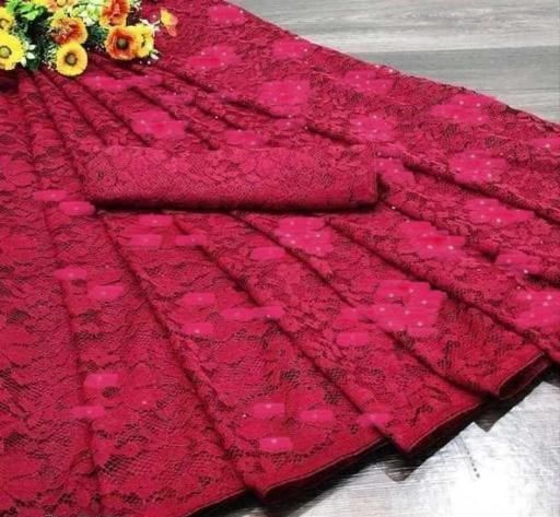Name: Brasso Net Red Saree With Blouse Saree Fabric: Net Blouse: Running Blouse Blouse Fabric: Net Pattern: Self-Design Blouse Pattern: Same as Saree Net Quantity (N): Single Sizes: Free Size (Saree Length Size: 5.5 m, Blouse Length Size: 0.8 m) Country of Origin: India