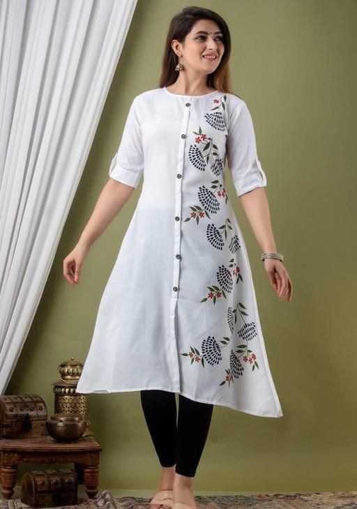 rayon cotton printed kurti fashionista women's white