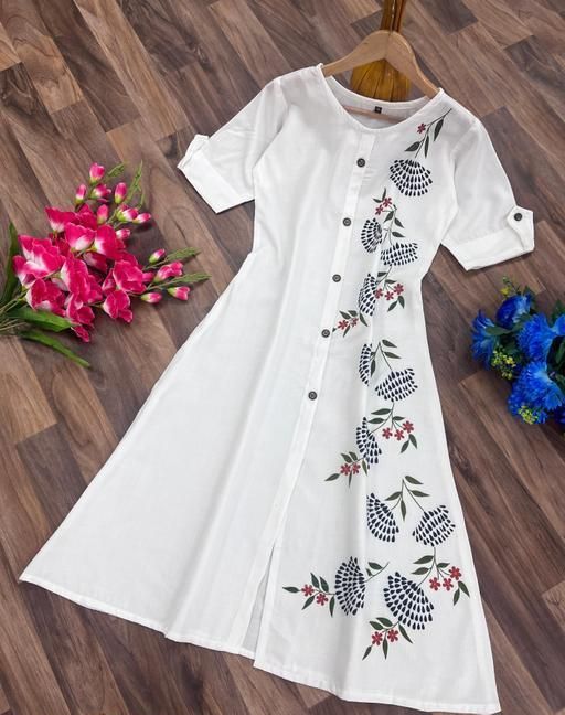 rayon cotton print kurti embroidery