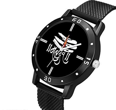 Name: BLACK STYLISH MAHADEV DIAL- PU STRAP WATCH & BROWN LEATHER TRISHUL BRACELET AND WATCH COMBO SET FOR MEN Analog Watch - For Boys