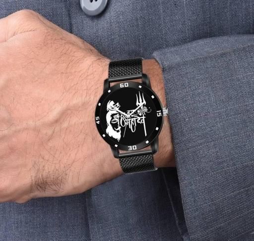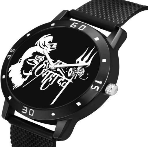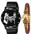 Name: BLACK STYLISH MAHADEV DIAL- PU STRAP WATCH & BROWN LEATHER TRISHUL BRACELET AND WATCH COMBO SET FOR MEN Analog Watch - For Boys