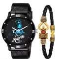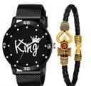 BLACK STYLISH KING DIAL- PU STRAP WATCH & BROWN LEATHER TRISHUL BRACELET AND WATCH COMBO SET FOR MEN Analog Watch - For Boys