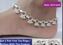 Silver Platted Anklet Payal For Women And Girls in 10.20" Inches Standard Size With Free Toe Rings. Pajeb