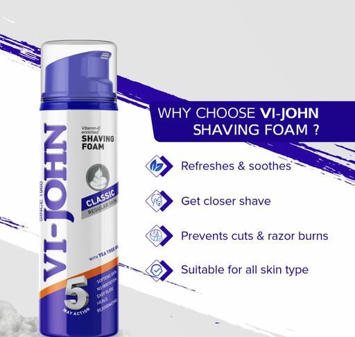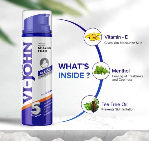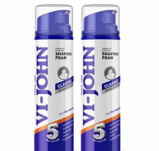VI-JOHN Classic Shave Foam for Regular Skin with Tea Tree Oil (200 GM Each) (Pack of 2) (400 g)