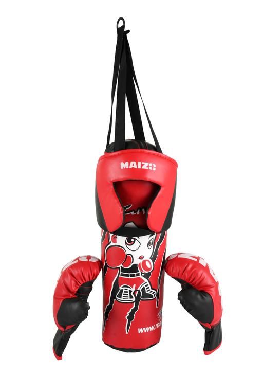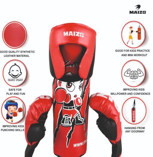 Name: Kids Boxing Set with Hanging Filled Punching Bag / Head Guard / Boxing Gloves For 5-12 Years Old Kids - Red