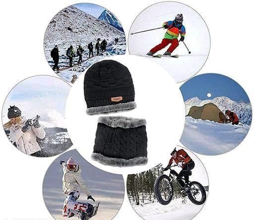 HRIDAY Unisex Winter Knit Beanie Cap Hat Neck Warmer Scarf(Pack of 1)