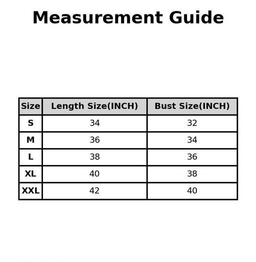 XXL (Chest Size: 42 in, Length Size: 42 in)