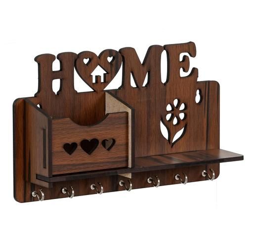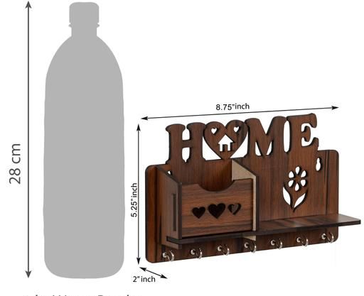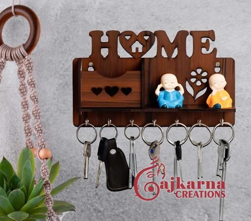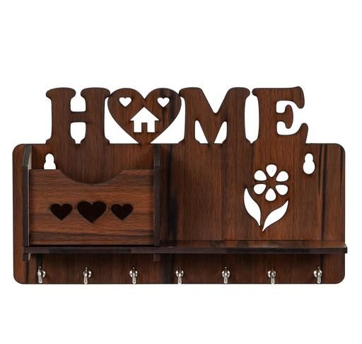 Name: Beautiful key Holder For Wall Home Design Key Holders Material: Wooden Color: Brown Product Length: 5 cm Product Height: 10 cm Product Breadth: 23 cm Net Quantity (N): 1 Do you often feel trouble finding your keys? When you don't find your keys at a time, you feel so helpless? So, how about creating a small tidy space in your home to keep your keys safe! Yeah ! That space is called a "Key Holder" Be artistic and try making that space creative and beautiful with Gajkarna Creation's Key Holders, that will spark your imagination. We present to you a natural brown, wood finish, wall-mounted key holders, ideal for any home or office decor. This key holder with metal hooks not only hang your keys at place but also has a space for your mobile! It works as a mobile holder and an organizer for hanging jewellery or other accessories. Country of Origin: India