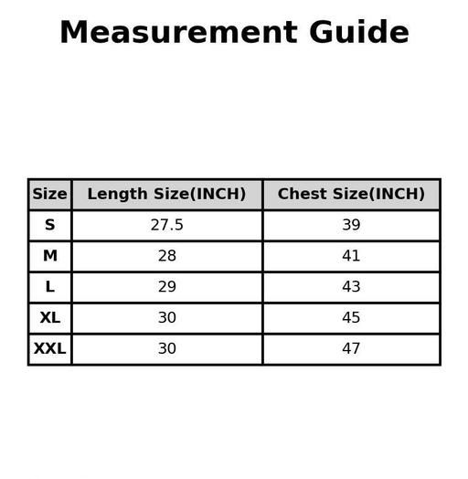 XL (Chest Size: 45 in, Length Size: 30 in)