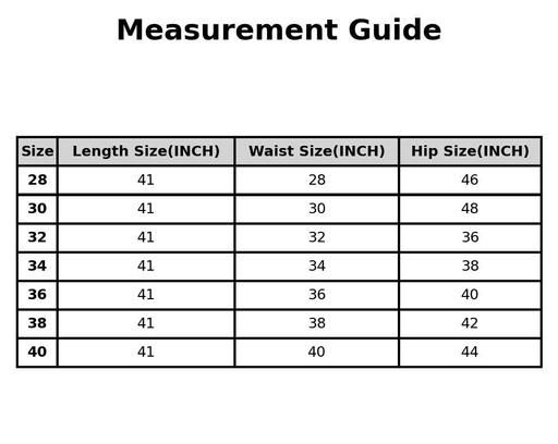 32 (Waist Size: 32 in, Length Size: 41 in, Hip Size: 41 in)