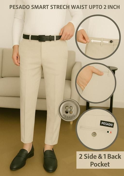 Name: Pesado Men's SMART FLEXI Beige Formal Trousers Pants(ADJUSTABLE WAIST UPTO 2 INCH)