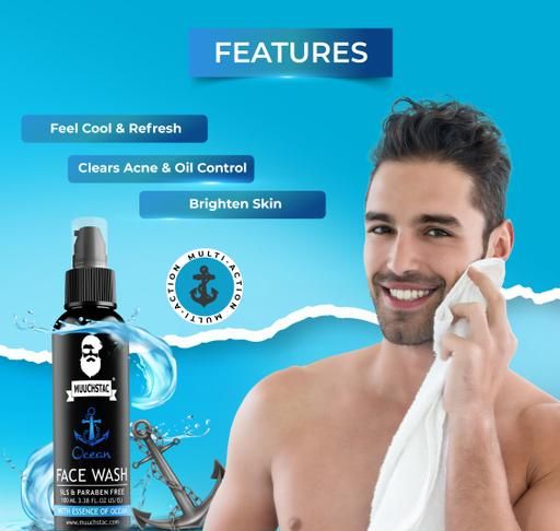 Name: Ocean Face Wash for Men | Fight Acne & Pimples, Brighten Skin, Clears Dirt, Oil Control, Refreshing Feel - Multi-Action Formula | 100 ml