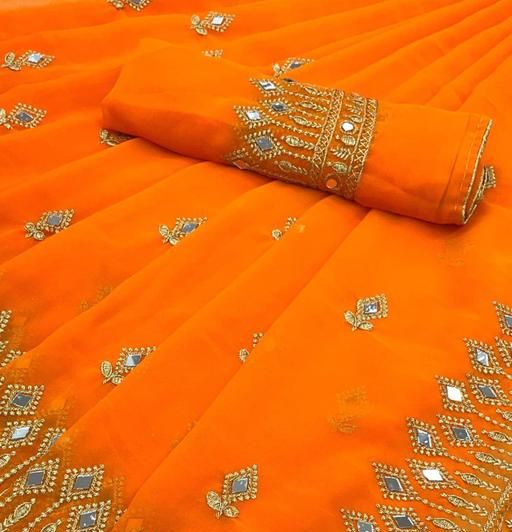AAKRUTI STYLE saree,AAKRUTI STYLE sarees,AAKRUTI STYLE embroidery saree,AAKRUTI STYLE mirror work saree,AAKRUTI STYLE georgette saree,Saree for women,new saree design,georgette saree,embroidered saree,Whether it is a wedding or an occasion for religious festivity at home, wear this lovely sari from Fashion to look beautiful and sophisticated. Crafted from Silk, this sari will fall beautifully on your silhouette. The floral embroidery adds more charm to this sari. It also comes with a matching blouse piece that you can get tailored according to your liking.