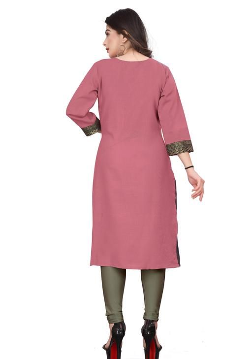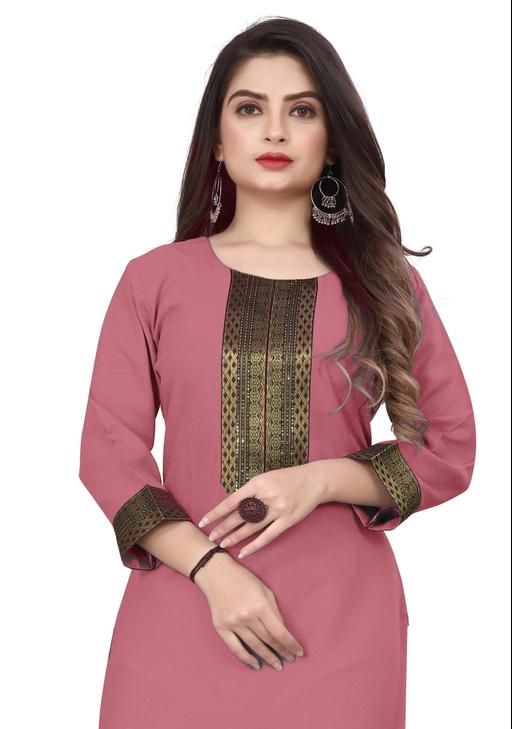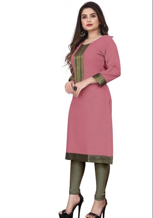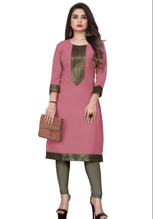 Name: Desigener Kurtis New Collection Plain Cotton Golden Lace Border Pattern Casual Kurta for Girls & Women