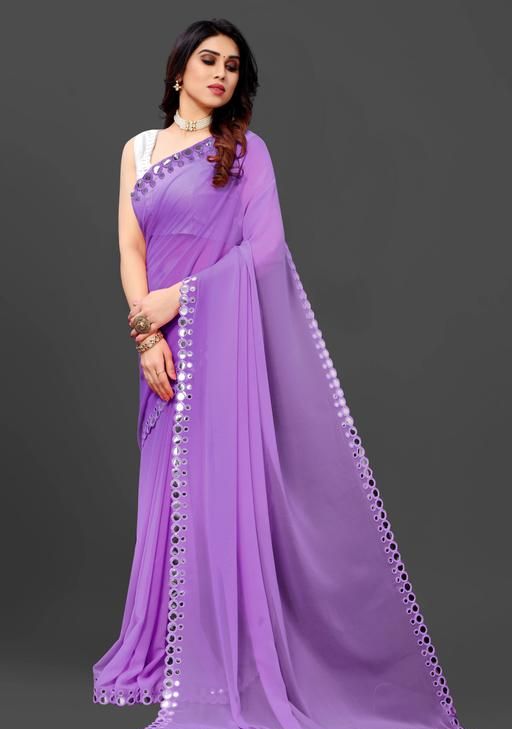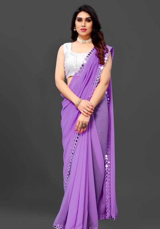 This is a Faux Georgette Plastic Mirror work Party Wear Saree.This Saree comes with an attached Art Silk blouse fabric which can be customised from 32" to 42