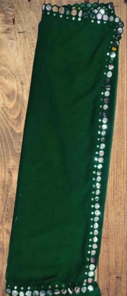 This is a Faux Georgette Plastic Mirror work Party Wear Saree.This Saree comes with an attached Art Silk blouse fabric which can be customised from 32" to 42