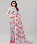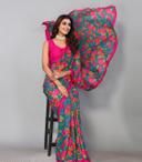 Women's Desinger Georgette Floral Printed Saree with Blouse Piece