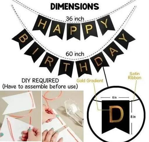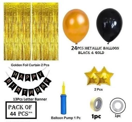 Name: Happy Birthday Decoration Kit Combo – 44pcs Birthday Banner Golden Foil Curtain Metallic Balloons With Hand Balloon Pump And Glue Dot for Boys Girls Wife Adult Husband Mom Dad/Happy Birthday Decorations Items Set