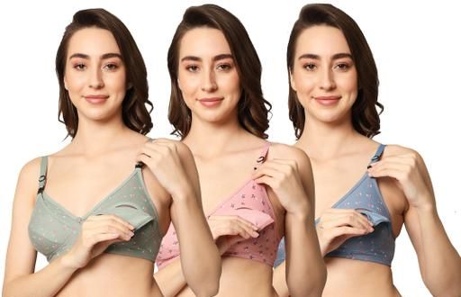Women's Cotton Non Padded Premium Maternity/Feeding/Nursing Bra Pack of 3 ( Pieces ) .