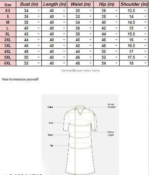 M (Bust Size: 38 in, Shoulder Size: 13 in, Kurta Waist Size: 34 in, Kurta Length Size: 42 in, Bottom Waist Size: 34 in, Bottom Hip Size: 40 in, Bottom Length Size: 40 in)
