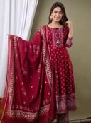 Women's Rayon Printed Anarkali Kurti with Pant and Dupatta Set