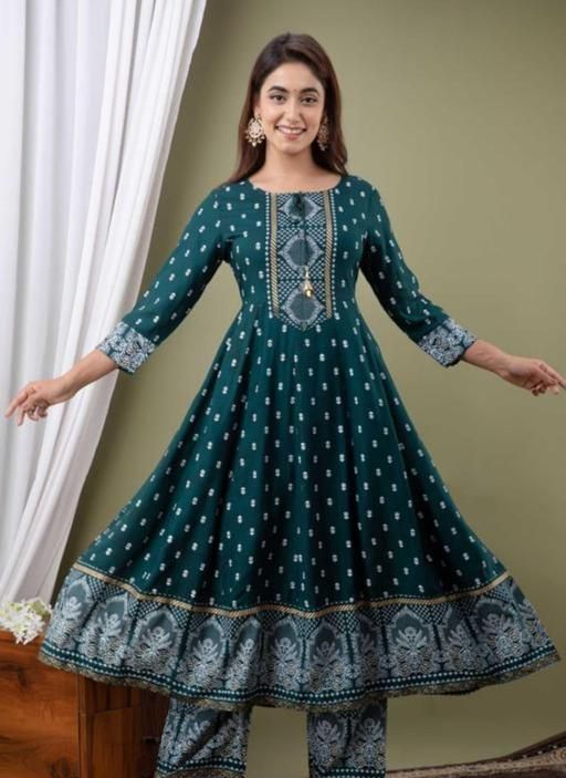 Women's Rayon Printed Anarkali Kurta Dress is a must-have for any fashion-conscious woman. Made from soft and comfortable rayon fabric, this dress features a beautiful print that is sure to make a statement. The Anarkali style kurta dress is flowy and comfortable and perfect for any casual occasion. The dress comes with a full-length flare that adds elegance and charm to the overall look. The dress is perfect for everyday wear, and is sure to become a staple in your wardrobe. It is available in various sizes and perfect for any casual occasion.