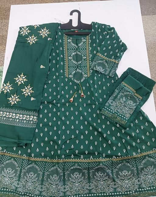 Name: Women's Rayon Printed Anarkali Kurti with Pant and Dupatta Set