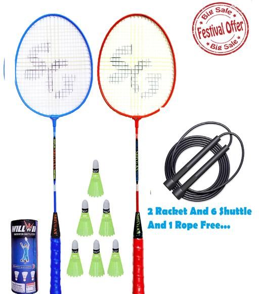 Name: Willwin Hybrid Sepcail Combo 2 racket and 6 shuttle and 1 rope free