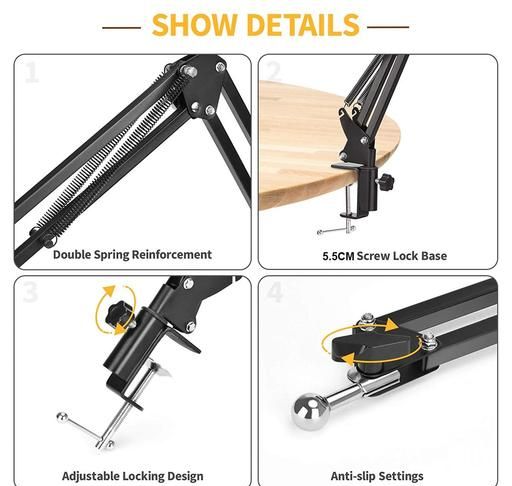 This mobile stand is made of Steel, which has a high level of quality, durability, and strength. By adjusting the lower base clamp to any edges, you can easily install it on any racks or edges of a Bed, Kitchen, Desktop Table, Office Table, and so on. The mobile mount and tablet mount brackets can be rotated 360 degrees to adjust the angle. Any mobile phone with a width of up to 3.1 inches or 8 cm and any tablet with a width of up to 21cm or 5.5 inches can be easily attached. Charge your phone or tablet while recording videos. Each joint has a 360-degree angle adjustment feature. Base Clamp- It can be mounted on any edge of the bed, study/drawing tables, kitchen racks, and other similar surfaces. The entire upper portion of the overhead tripod can be rotated 360 degrees horizontally from its axis. Tight and Lose Knob/Key - This tight and loose knob key is provided at each joint to allow you to adjust any angle of your video shooting needs.