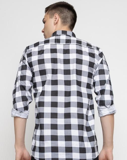 Name : FREKMAN Men's Regular Fit Checked Pure Cotton Blend Full Sleeve Spread Collar Shirt-BLACK