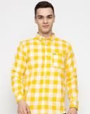 Name : FREKMAN Men's Regular Fit Checked Cotton blend Full Sleeve Spread Collar Shirt-Orange