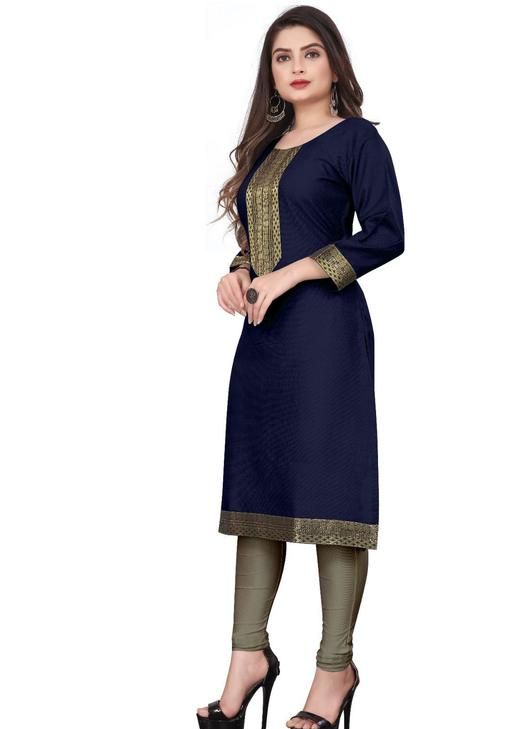 Premium quality solid cotton fabrics, Golden zari lace border, 3/4 type regular sleeves, Round neck design with above knee 40 inches length, Suitable to wear in party, function, office, work, college, ceremony or regular wear, Plus sizes available small to 5x-large, Have available many colors in this design, Note: Brand size chart available in description, Note: It’s a one piece kurti / dress only (not with leggings or pant), Note: Product color may be vary because of lightning source while photo shooting or your device screen settings. VISVA DESIGNER brings to you these beautiful kurtis which are made from cotton fabric available in solid colour with golden black lace border with straight style. This kurtas has been designed keeping in mind the trends in contemporary fashion.