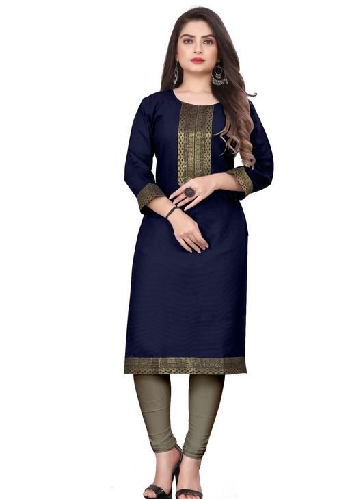 Name: Desigener Kurtis New Collection Plain Cotton Golden Lace Border Pattern Casual Kurta for Girls & Women